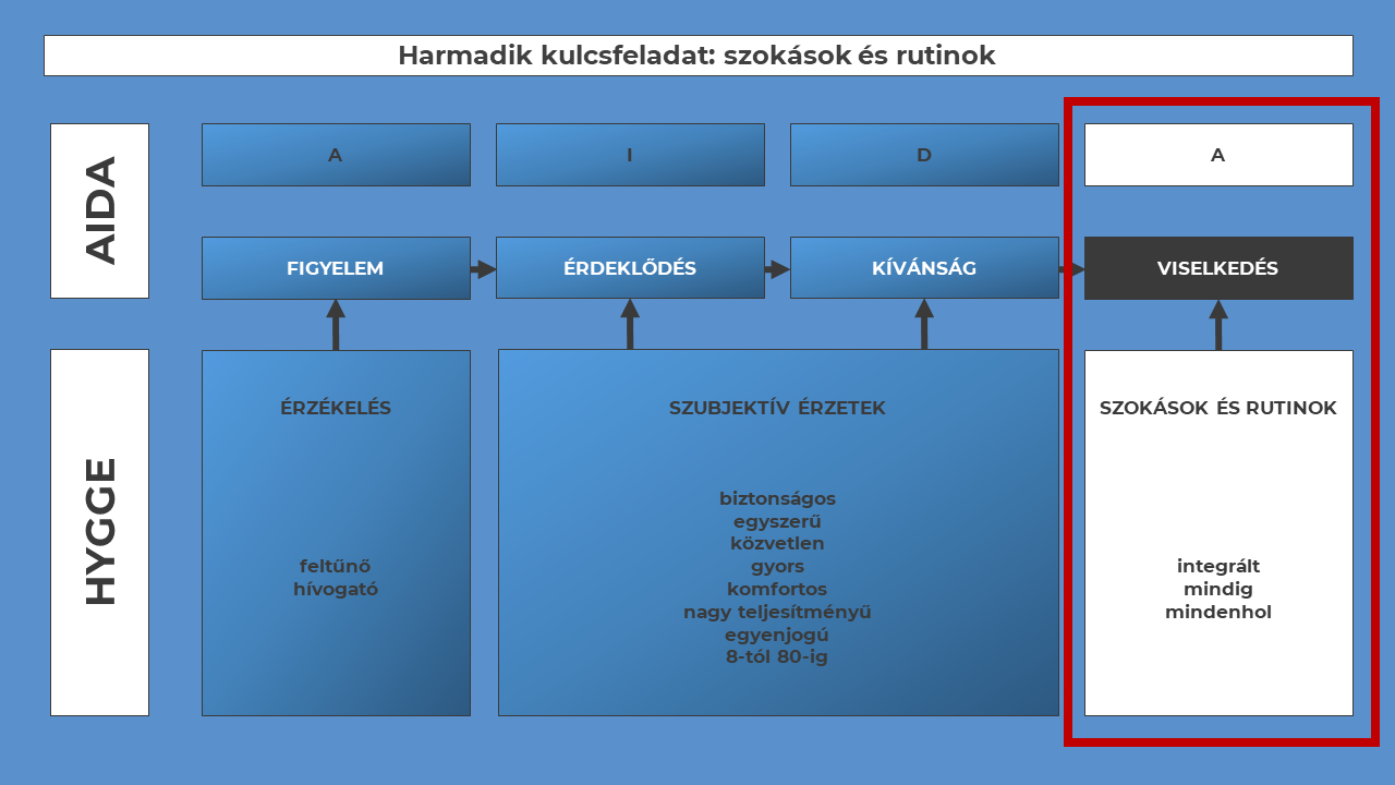 A hygge-modell kidolgozása azon a fölismerésen alapul, hogy ha a döntések 80%-a a tudat alatti szinten születik, akkor a kerékpározás fejlesztése érdekében a marketingnek épp erre a tudat alatti, érzelmi szintre kell fókuszálnia.