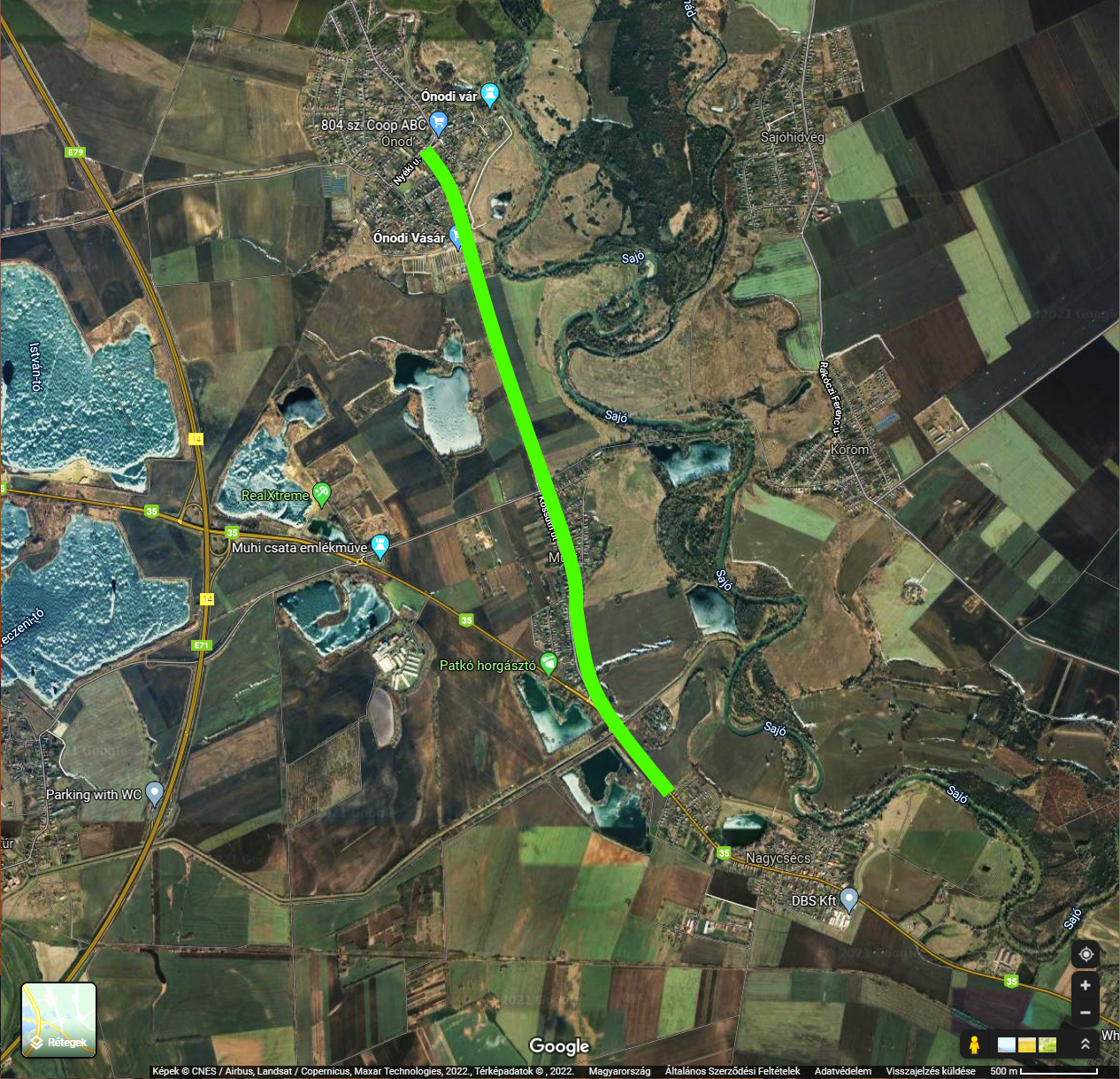 A tervezés terület tehát a 35 j. út régi kerékpárútjához kapcsolódva, Nagycsécs északi szélétől indul és Ónodon a Rákóczi és a Nyéki utcák csomópontjáig tart.