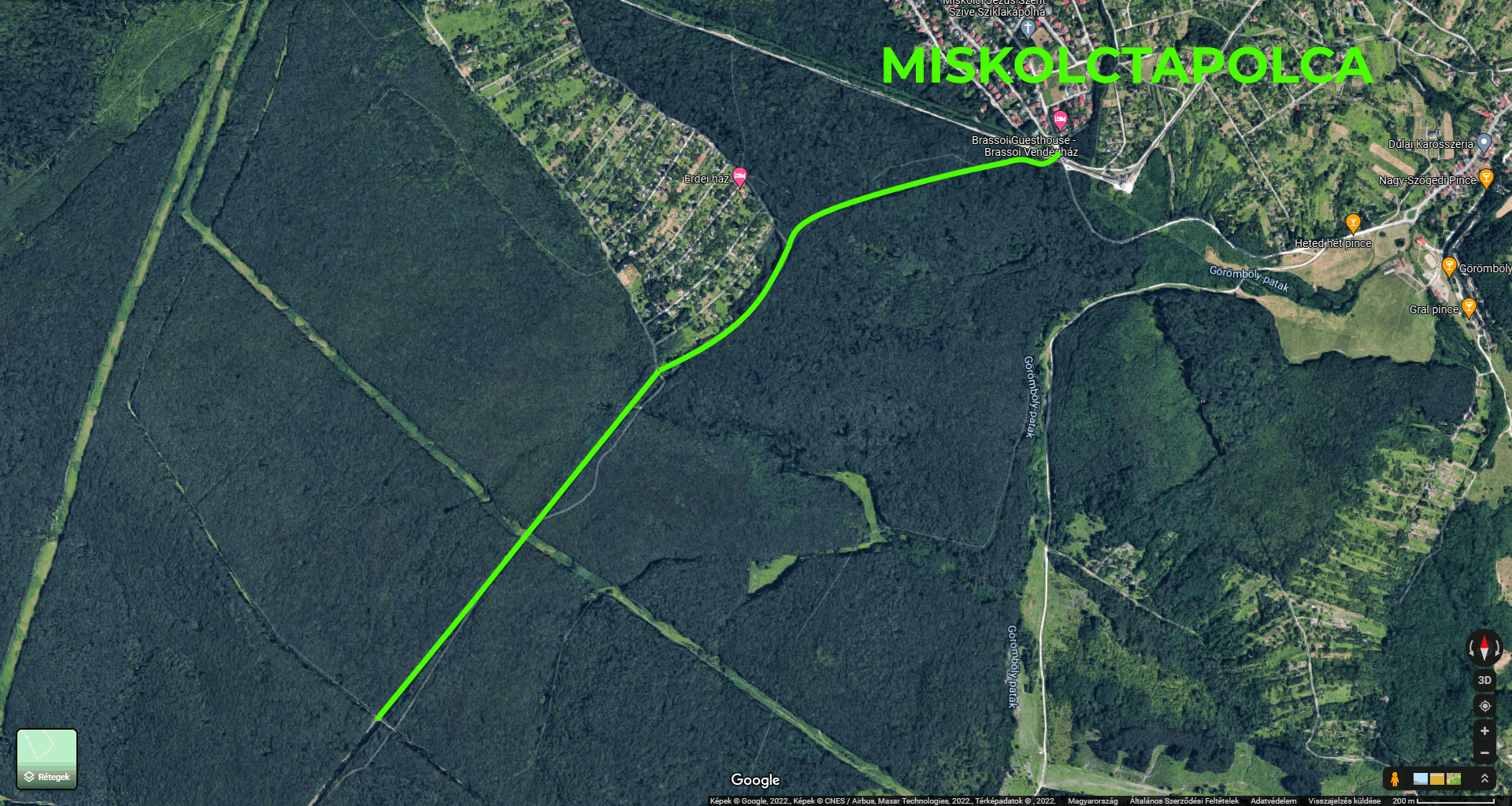 A miskolci projekteket bemutató sorozat posztjainak címképei az éppen tárgyalt nyomvonalat ábrázoló műholdképek. Ezekhez a Google Maps kivágatait használtuk, amelyeken világoszölddel tüntettük föl a tervezett nyomvonalakat.