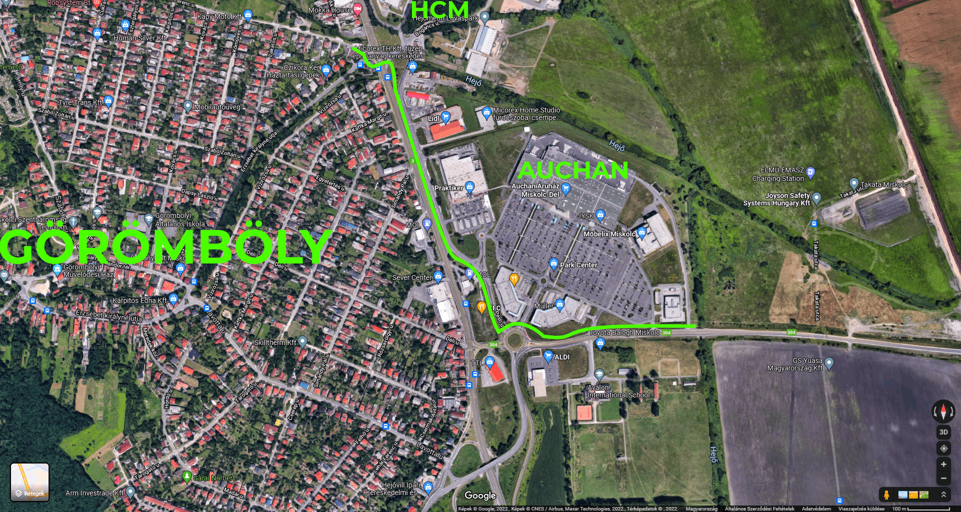 A legfurcsább a harsányi út elérése lesz: a Déli utca – Simándy Pál utca – Lavotta utca útvonalon, kerékpáros nyomokon – amelyek már le is koptak, a műholdképre mi sem rajzoltuk föl őket.