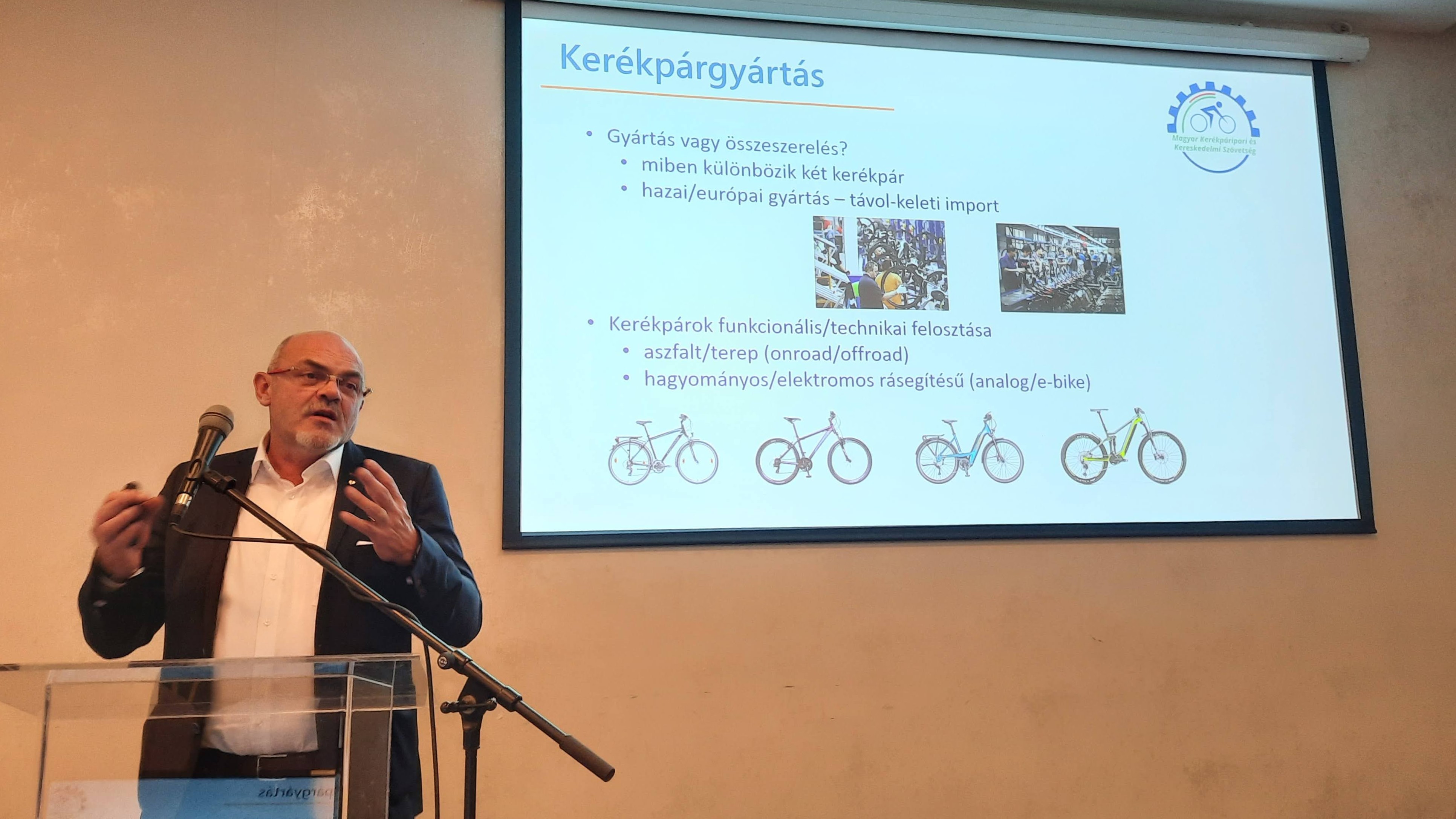 Az előző előadások témájától jelentősen eltért, de ugyanolyan izgalmas volt Sipiczki Róbert, a Magyar Kerékpáripari és Kereskedelmi Szövetség elnökének előadása, hiszen ő magáról a járműről, a kerékpárról, illetve a kerékpáripar, a kerékpárkereskedelem helyzetéről árult el érdekes információkat.