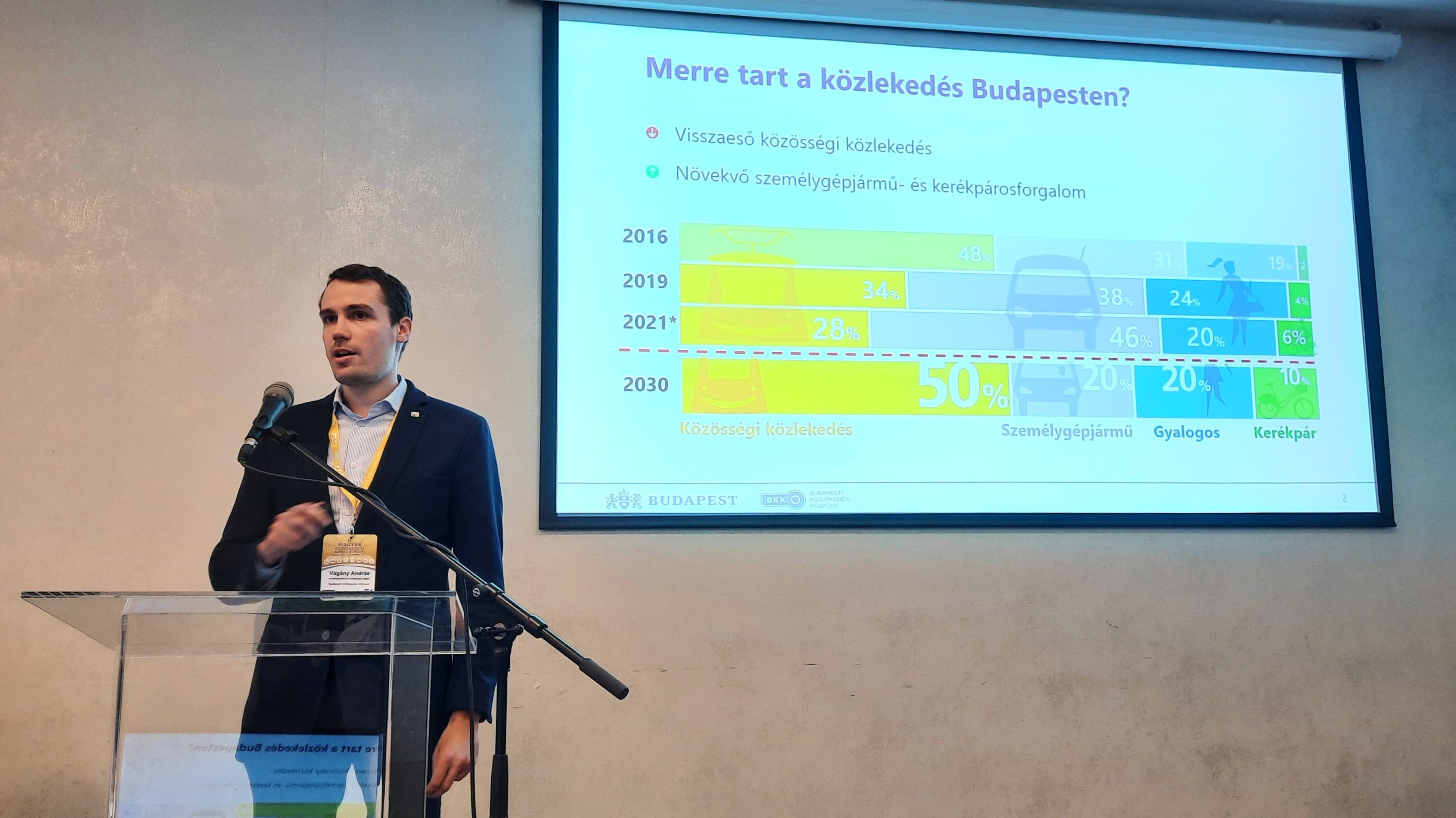 Ezután Vágány András, a BKK mobilitásfejlesztéssel és modellezéssel foglalkozó szakértője lépett az előadói pulpitushoz.
