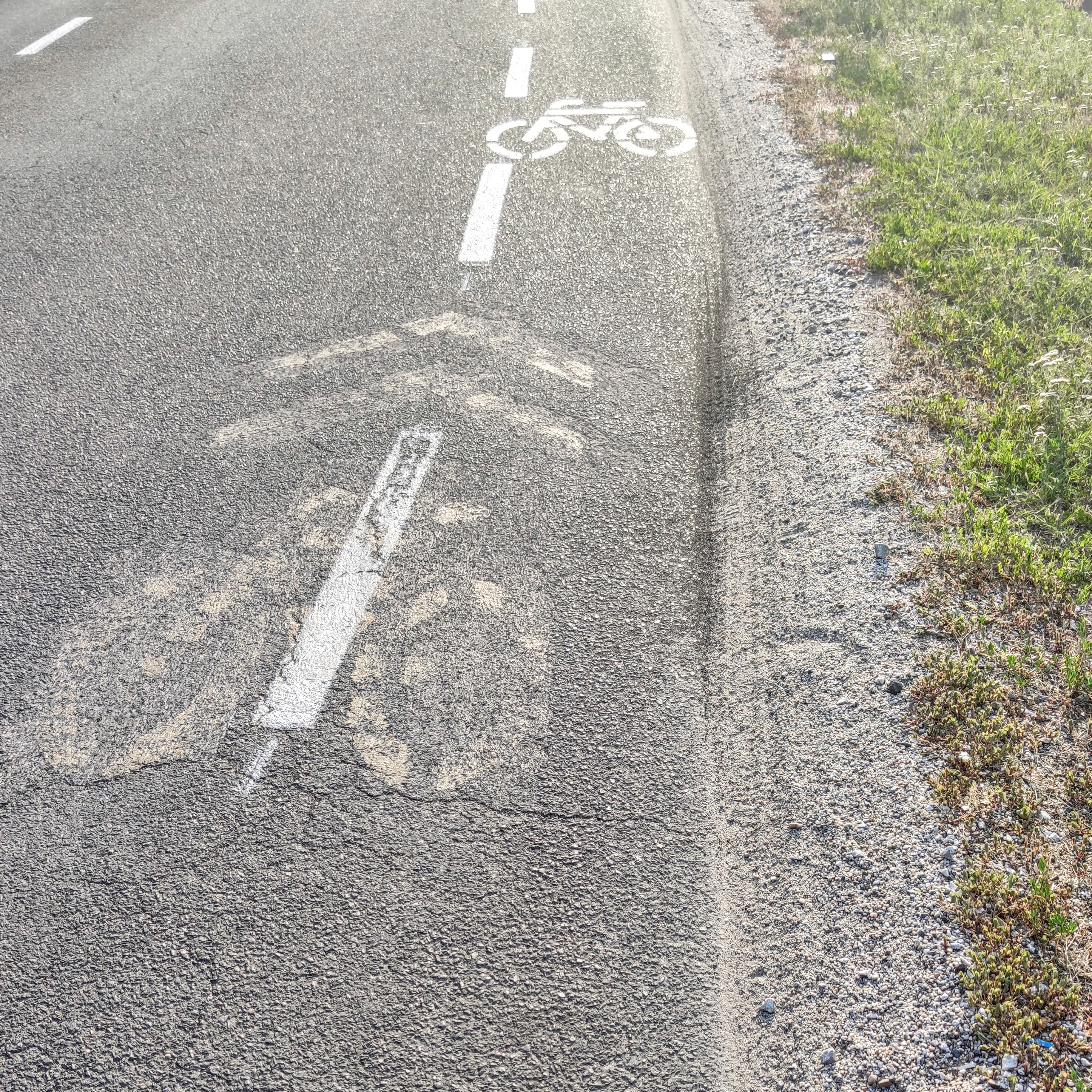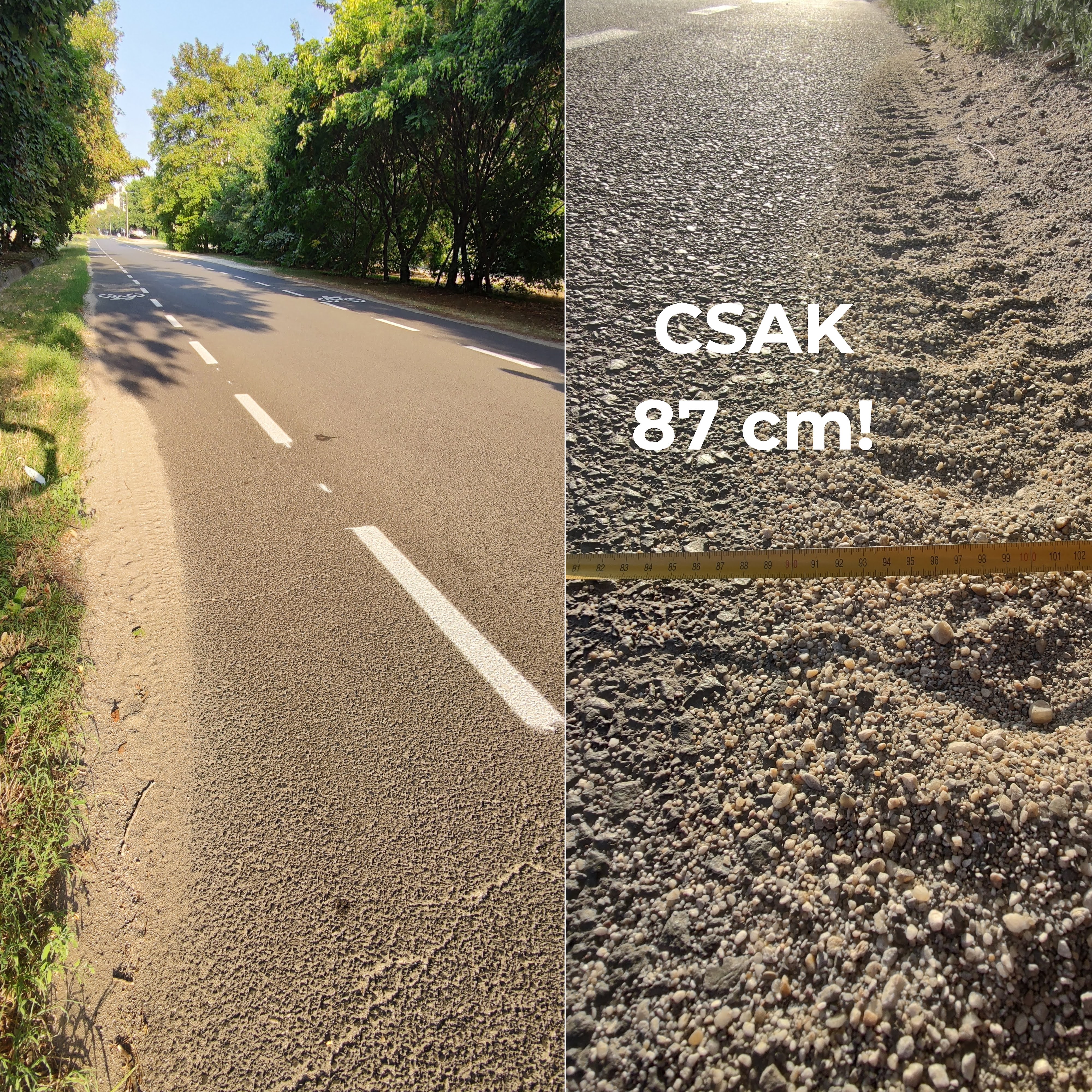 - nagy gond, hogy az úttest széle tele van törmelékkel, nincs letisztítva, így a sávok ténylegesen használható szélessége jelentős hosszban még az 1,00 m-t sem éri el.