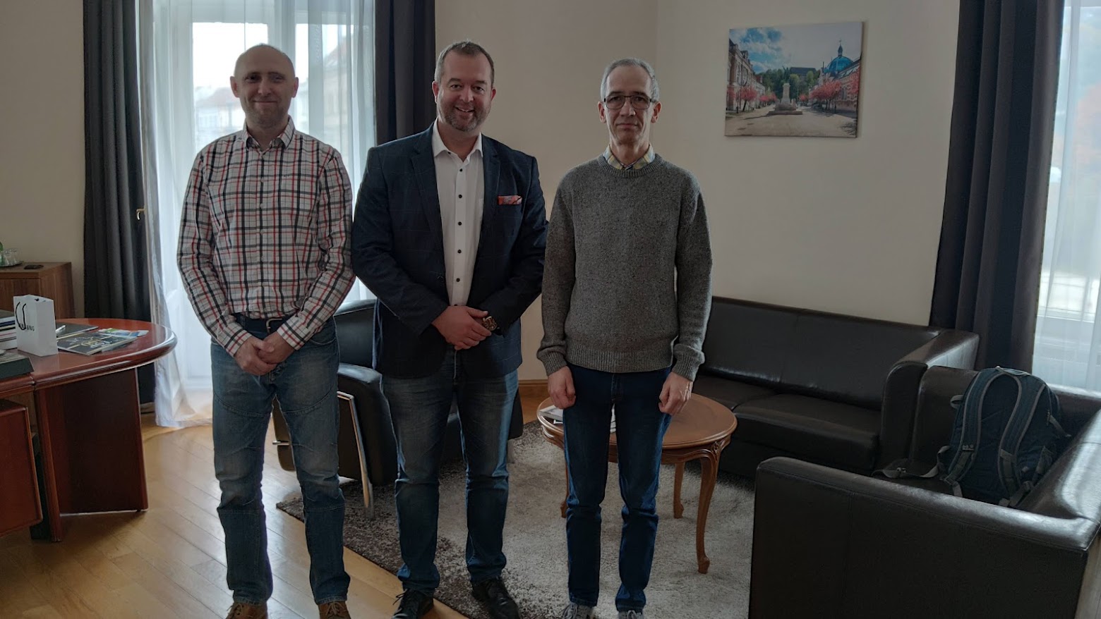 Alpolgármester úr hivatalában. Balra Vascsák Roland, a KME elnökhelyettese, középen Hollósy András, Miskolc MJV alpolgármestere, jobbra Kunhalmi Zoltán, a KME elnöke