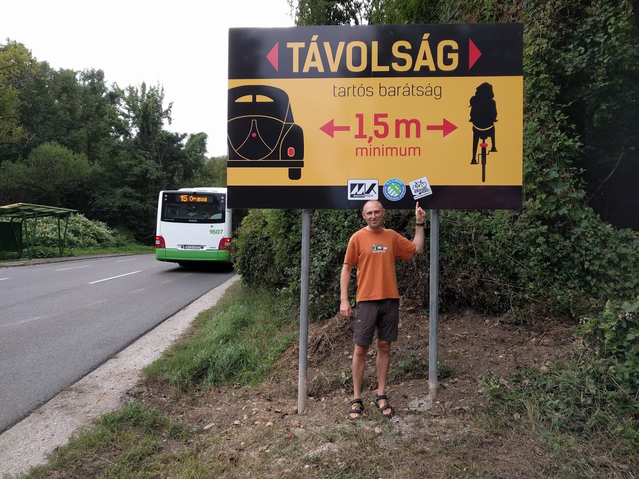 Emlékeztek, 2018-ban Borsodban megszerveztük az ország első komplex oldaltáv-kampányát, ennek egyik elemeként azóta is óriástáblák figyelmeztetnek négy helyen a megyében a legalább másfél méteres előzési oldaltávra. Az ismeretlen ötletadó talán ezt koppintotta le, amiért nemhogy nem haragszunk, de örülünk neki, mert tényleg nem lehet elég ezekből a táblákból. Valószínűleg nem csak a mi tapasztalatunk, hogy még mindig gyakori gond a szűk oldaltávval előzés. Lassú víz partot mos – a változáshoz sokat kell sulykolni a helyes előzési oldaltávot, szóval az ilyen táblákra bizony nagy szükség van.