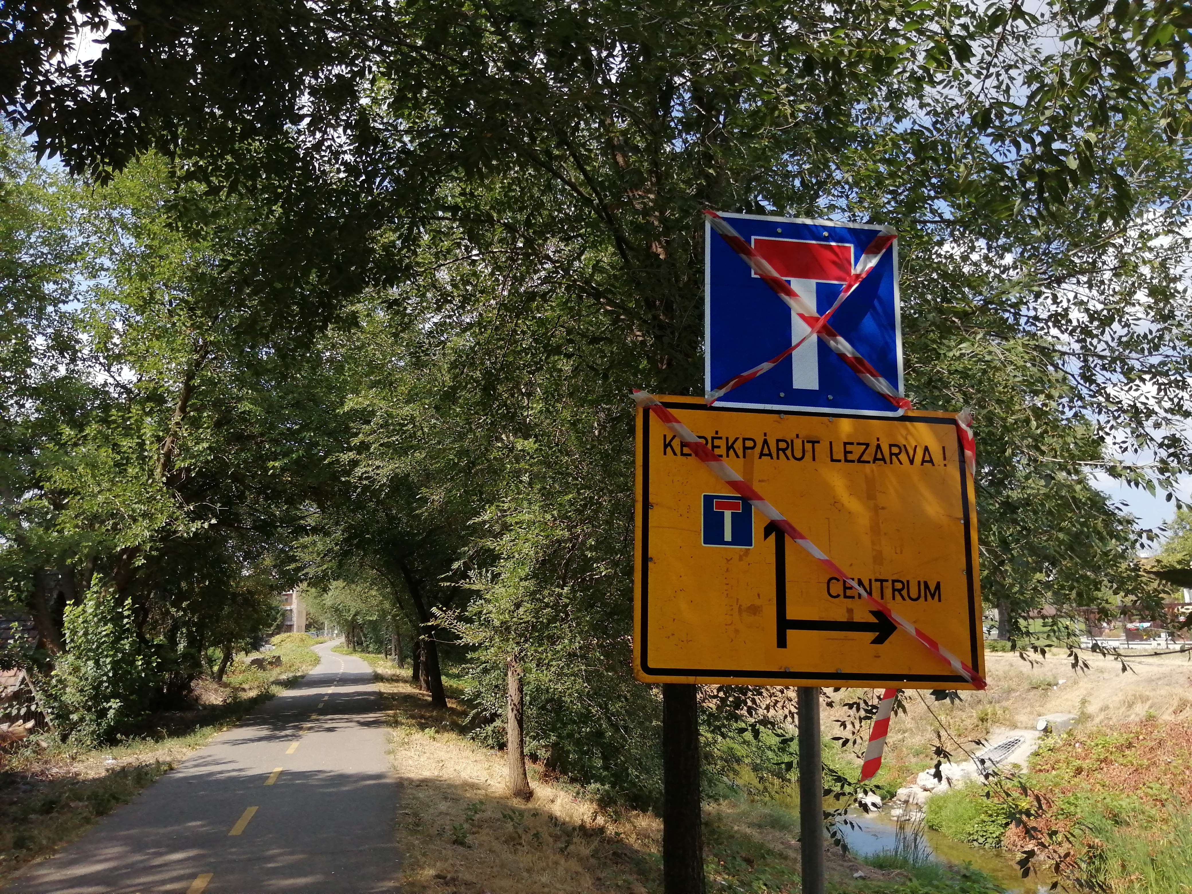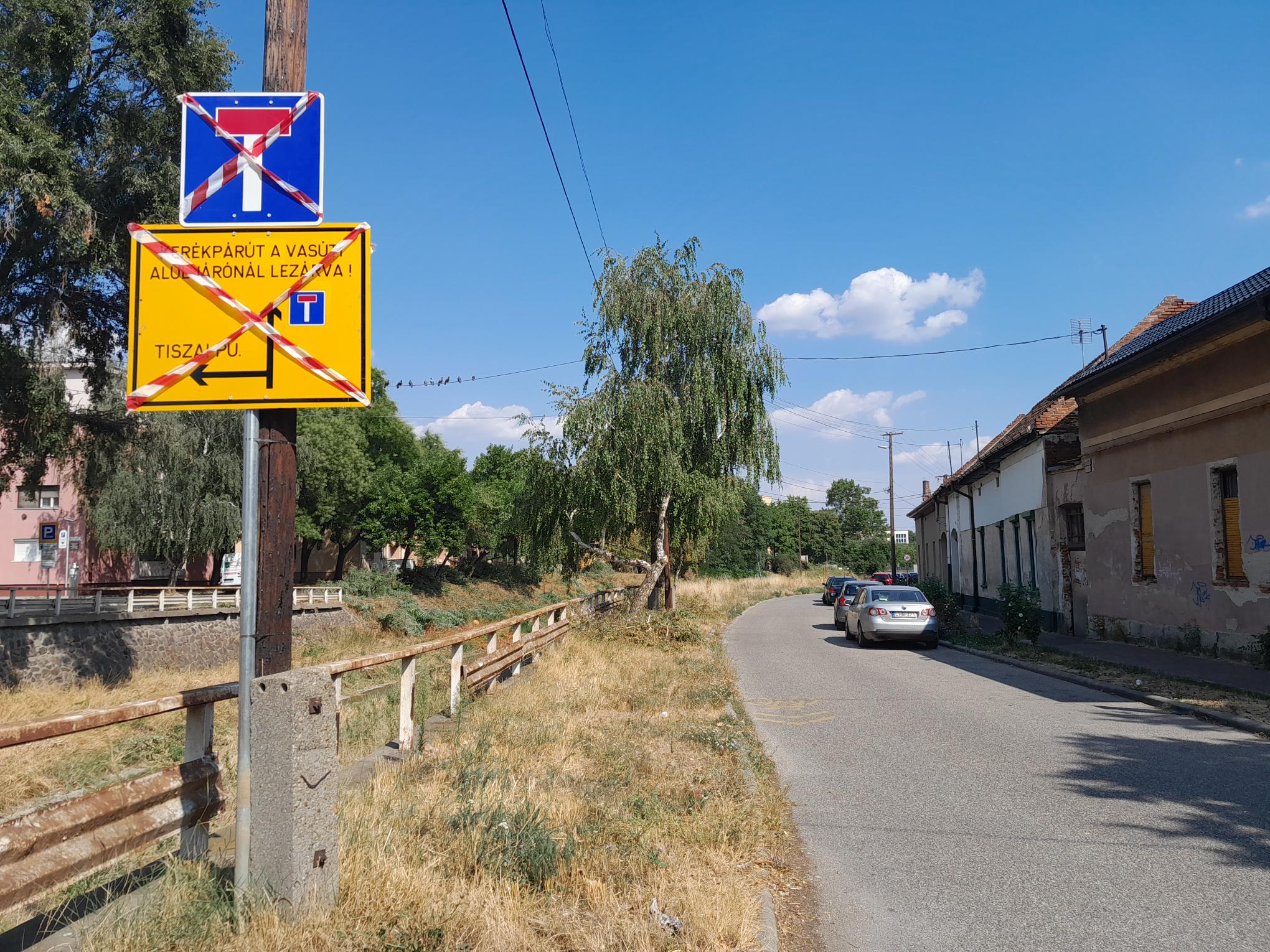 A Tiszai pályaudvar felőli táblákat már át is helyezték, így legalább az megoldódott, hogy aki erről hajtana be a kerékpárútra, már az út elején tájékoztatást kap a lezárásról.