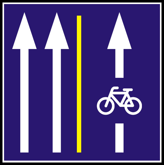 Előfordulhat, hogy végig az úttesten nem alkalmazzák, hanem csak a csomópontok járműosztályozójában.
