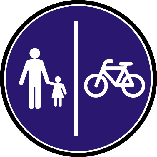 Utóbbi esetben a gyalogosok és a kerékpárok közlekedésére szolgáló felületrészt folytonos sárga vonal, vagy valamilyen épített elválasztás különíti el.