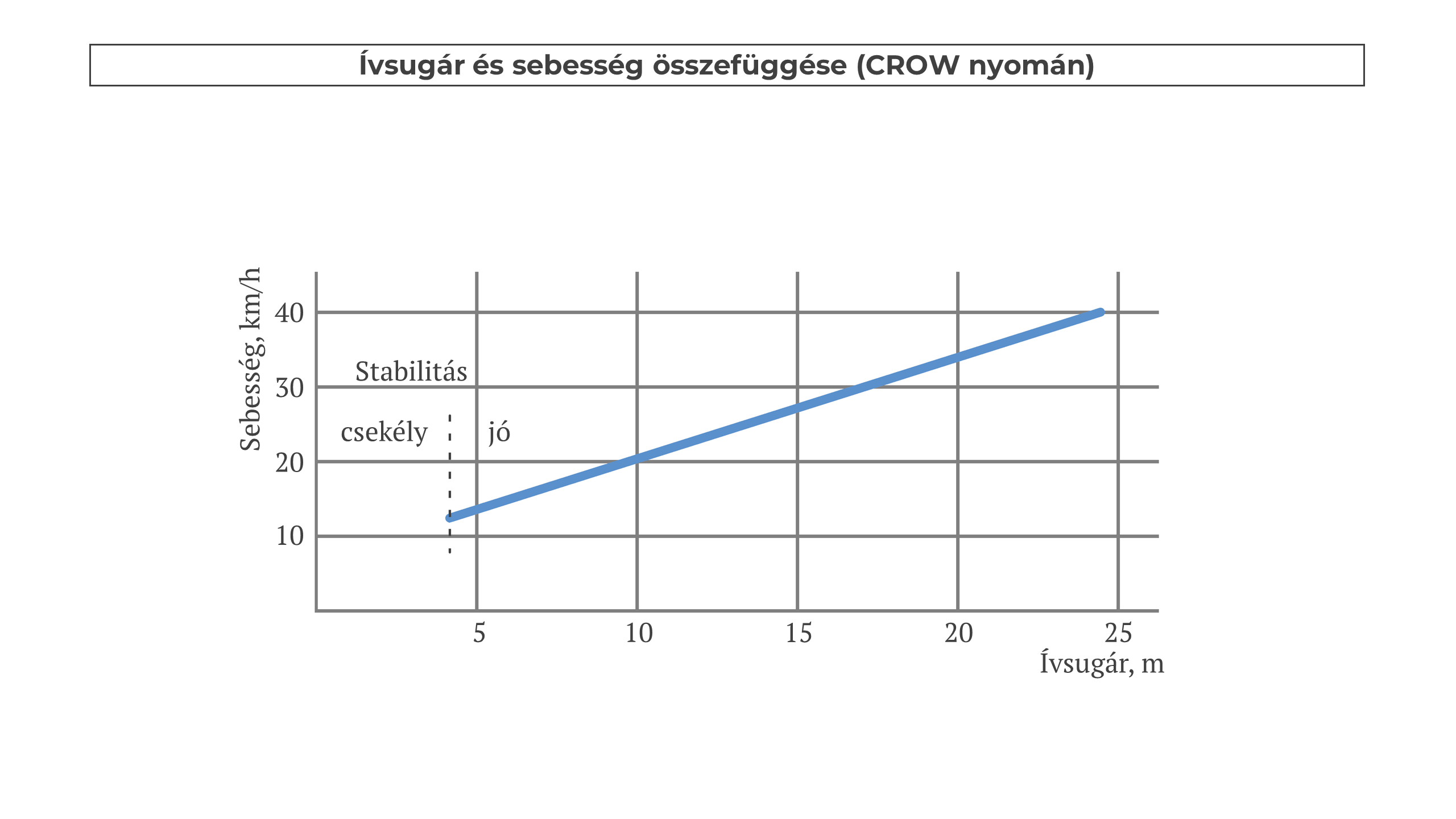 - főhálózaton (vt= 30 km/h): R ≥ 20 m,