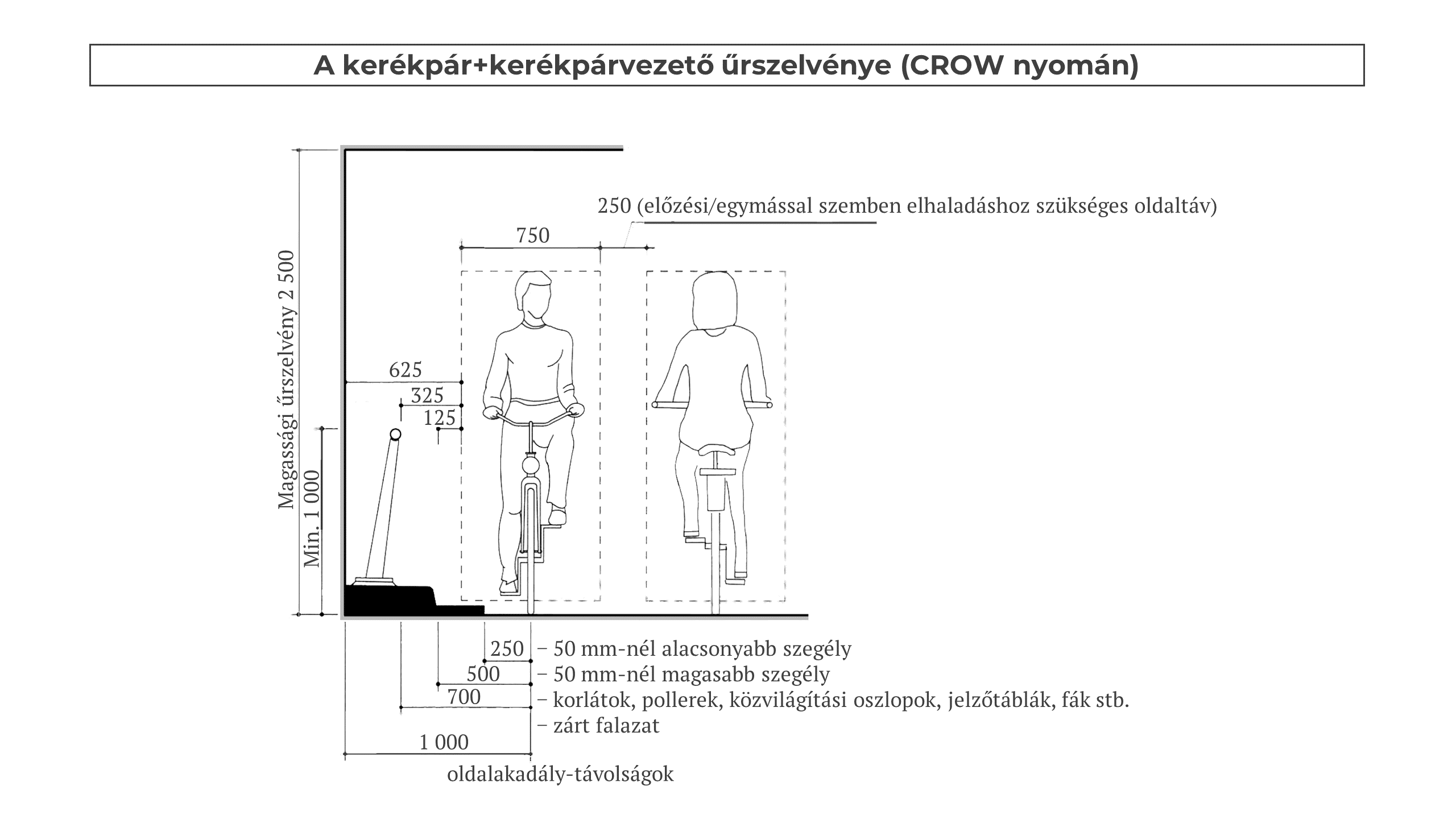 A tervezés alapjául szolgáló kerékpár-méretek (CROW Manual alapján):