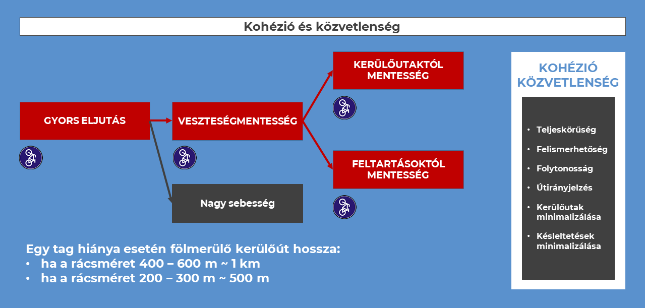 A kerékpárszerűek hálózata alkosson összefüggő és a közlekedők számára nagyon könnyen fölismerhető egységes egészet.