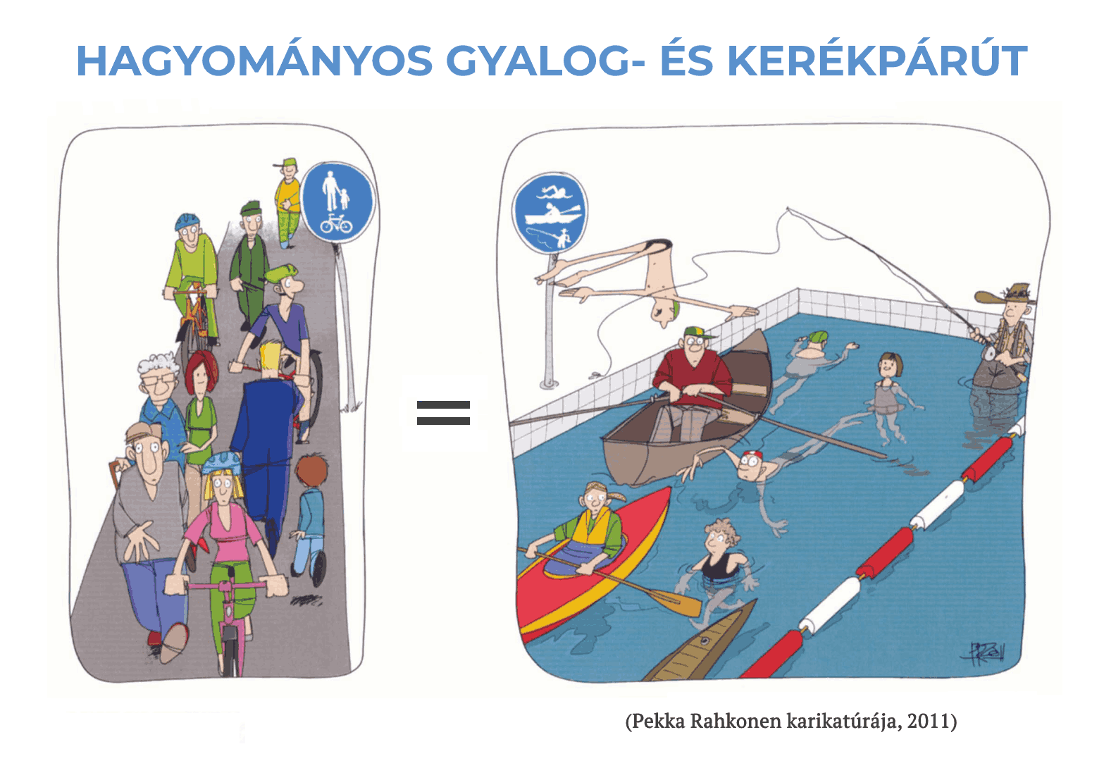 Azok a döntéshozók, beruházók, tervezők, akik úgy gondolják, hogy a rosszul tervezett, minimálszélességű, egyoldali kétirányú gyalog- és kerékpárutak komfortos és biztonságos megoldást nyújtanak az úthasználók számára, részben azzal szoktak érvelni, hogy mindenki számára biztonságosabb, ha a kerékpározókat a gyaloglókkal közös felületen vezetik, mintha az autókkal közös felületeken vezetnék, részben pedig azzal, hogy hasonló hálózati elemek a nálunk fejlettebb kerékpározási kultúrájú nyugat-európai államokban is széles körben elterjedtek, kövessük hát az ő példájukat.