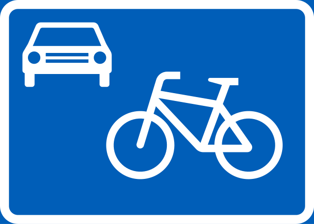 Jelzőtáblája nincs, az útburkolatra sárga kerékpárjelképek festhetők föl, de ez nem kötelező.