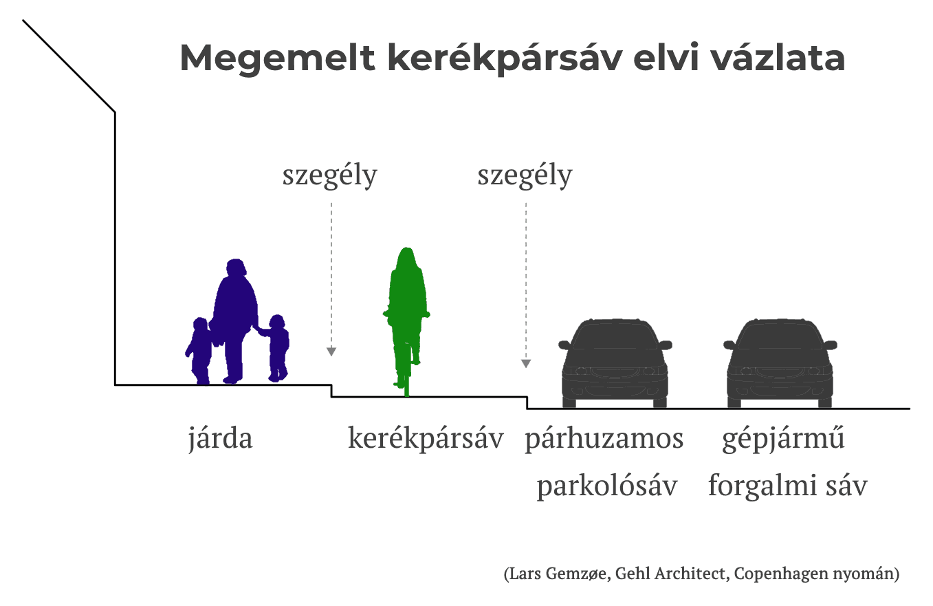 A megemelt kerékpársávra vonatkozó sajátosságok