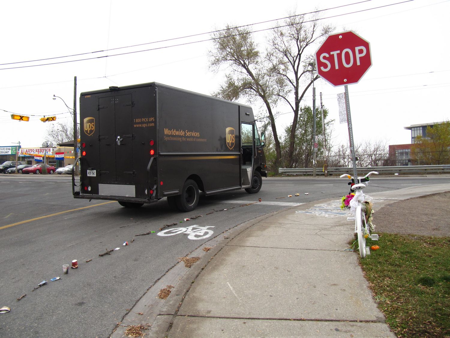 2011. november 7-én egy terhes kismama kerékpározott Torontóban, aki kisfiát kísérte haza. Halálra gázolták egy tehergépkocsival. Még ugyanabban a hónapban ismeretlenek kerékpárjelképeket festettek az úttestre a tragédia helyszínén, majd James Schwartz és Dave Messlin, a Toronto Cyclists Union alapítói háztartási szemétből, kávéspoharakból, sörösdobozokból vonalat, afféle kerékpársávot raktak ki az aszfaltra. Azt tapasztalták, hogy a gépkocsik nem hajtottak rá a szemétvonalra, hanem attól beljebb haladtak.Megszületett a védett kerékpársáv.