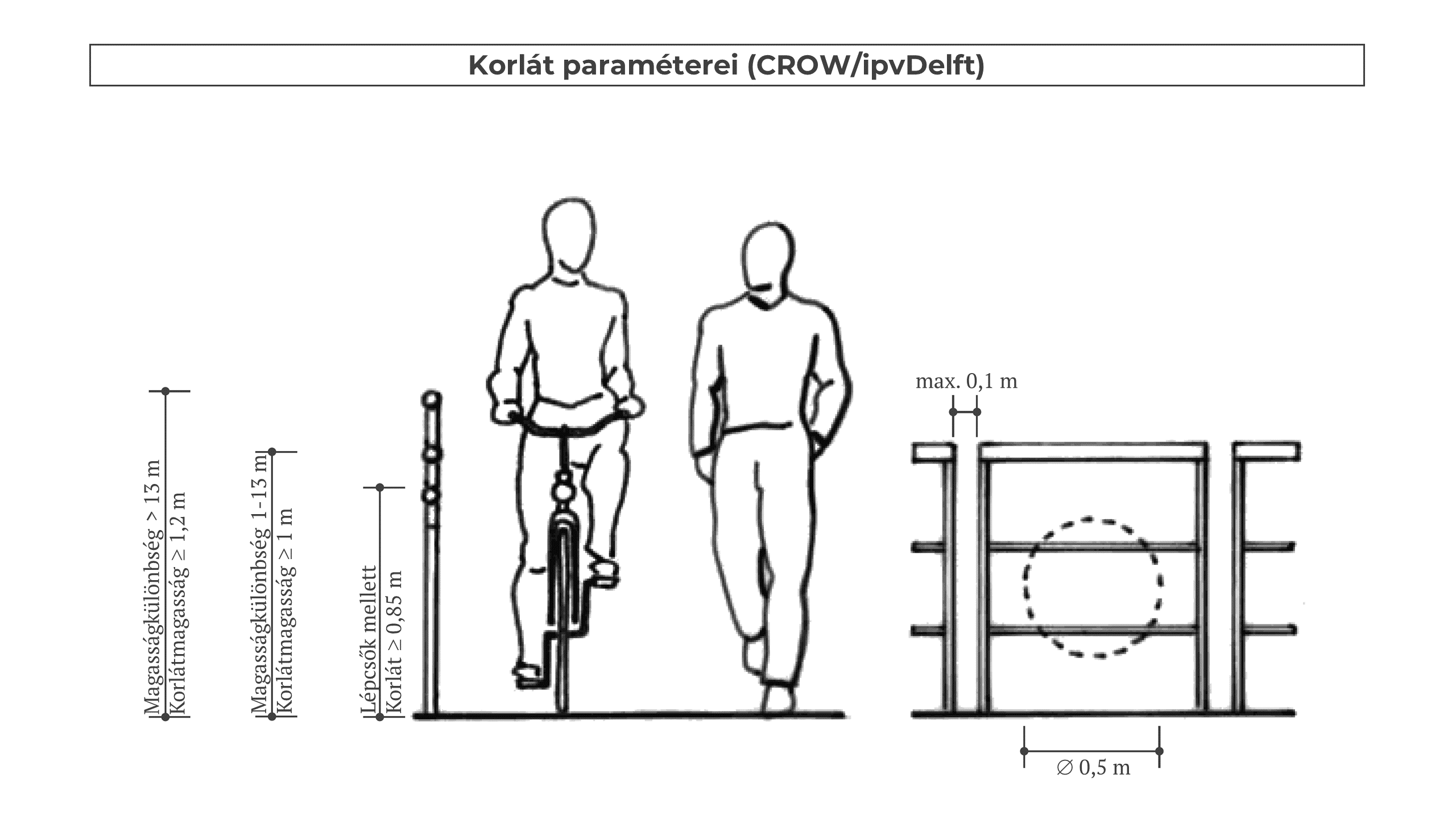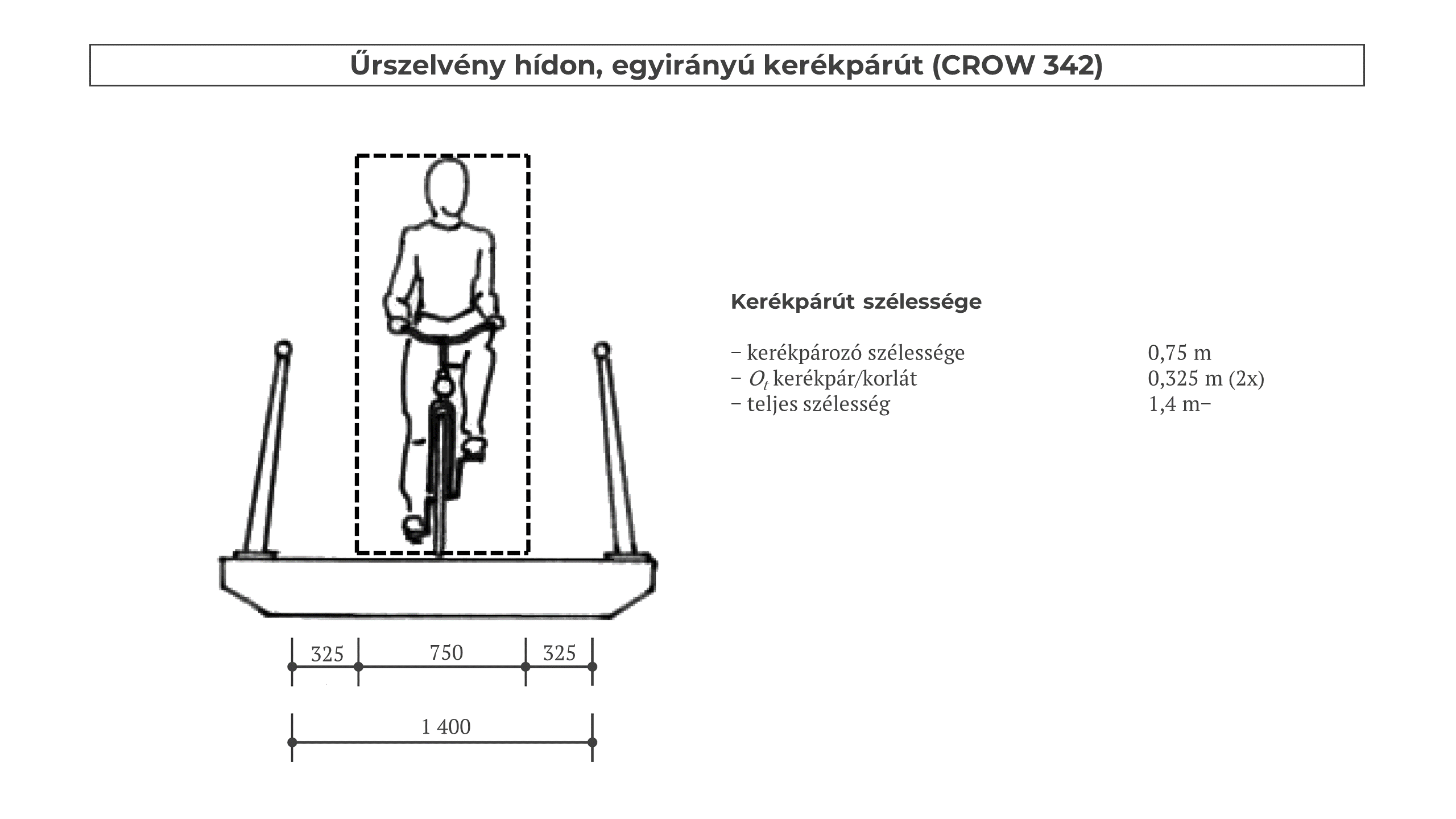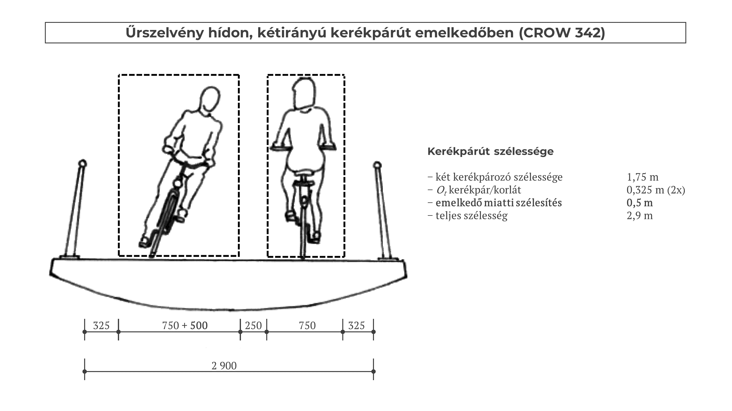 - ha a műtárgyon segédmotoros kerékpárok is közlekedhetnek, teljes használati szélességét 0,5 m-rel növelni szükséges,