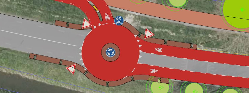 Ez a speciális körforgalom kitűnő megoldás. Afféle intuitív településkapu, lassítja a gépjárműforgalmat és biztonságossá teszi a kerékpárszerűek oldalváltását.