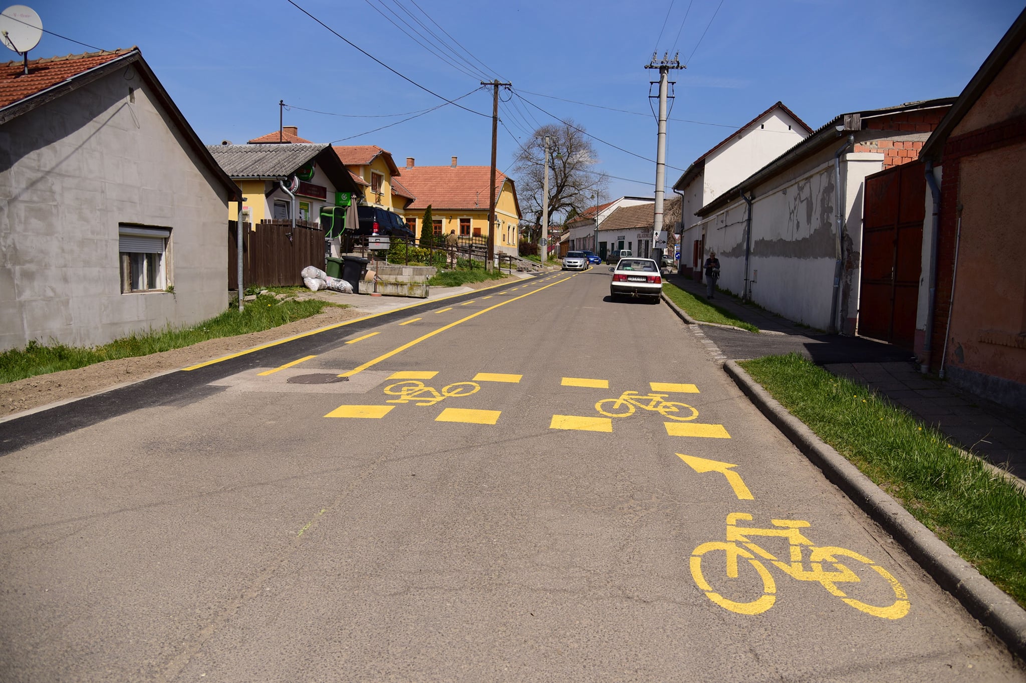 - látványos, hogy a 30 km/h sebességhatárú utca járműközlekedésre szolgáló felületeinek burkolására nem a nagyobb sebességű utakra való aszfaltot, hanem térkőburkolatot terveztek, amelynek a színe is üzenetértékű (nem aszfaltszín),