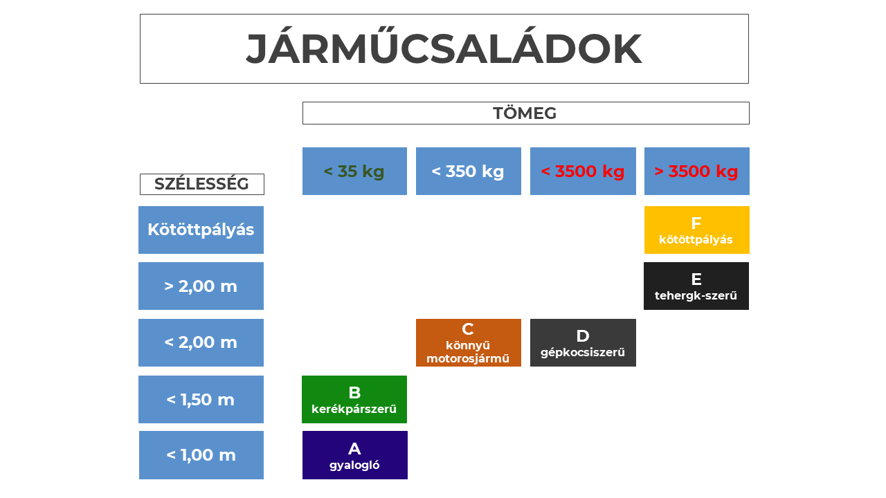 2. ALAPELV – JÁRMŰCSALÁDOK: A JÁRMŰVEK A TÖMEGÜK ÉS MÁSODLAGOSAN AZ ELÉRHETŐ SEBESSÉGÜK ALAPJÁN OSZTÁLYOZHATÓK